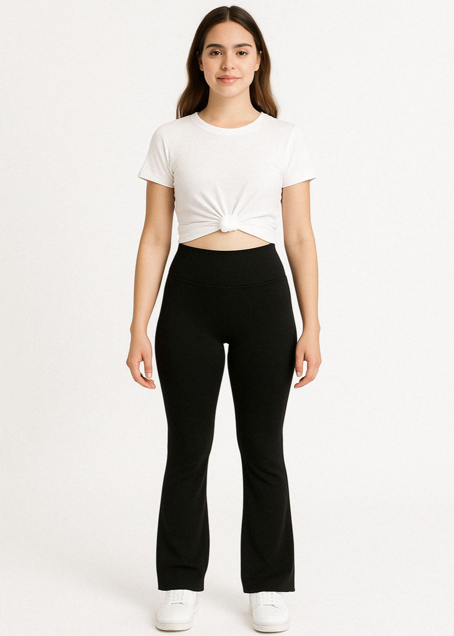 Women's High-Waist Flared Leggings – Black | Stretchy, Sculpting, and Stylish