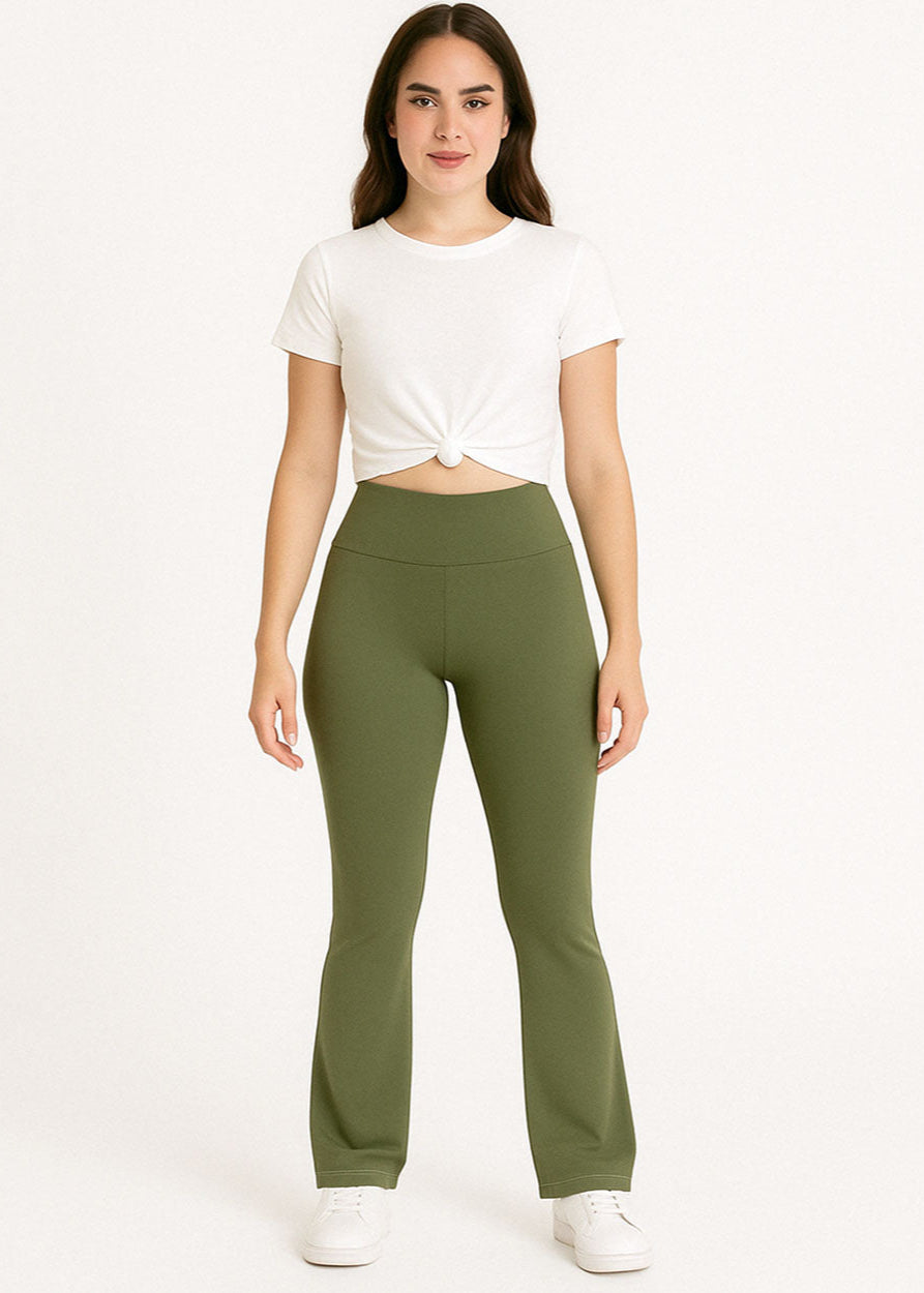 Women's High-Waist Flared Leggings – Olive| Stretchy, Sculpting, and Stylish